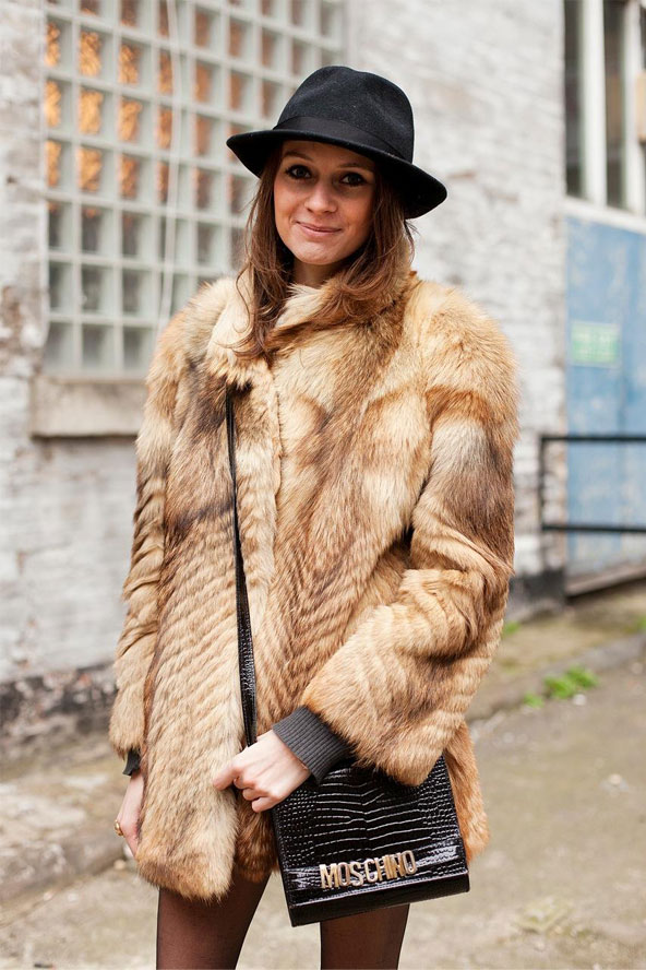 My coat and hat are vintage (and faux); my bag is Moschino.